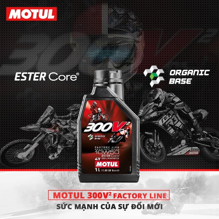 Motul 300V Factory Line 10W40 là dòng dầu nhớt tổng hợp cao cấp, sử dụng công nghệ đột phá độc quyền Ester Core từ Motul. Chất lượng của sản phẩm được đánh giá vượt trội, nổi bật hơn nhiều loại dầu nhớt khác hiện có trên thị trường.