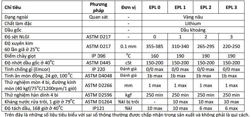 Thông số kỹ thuật của mỡ Castrol spheerol EPL 3